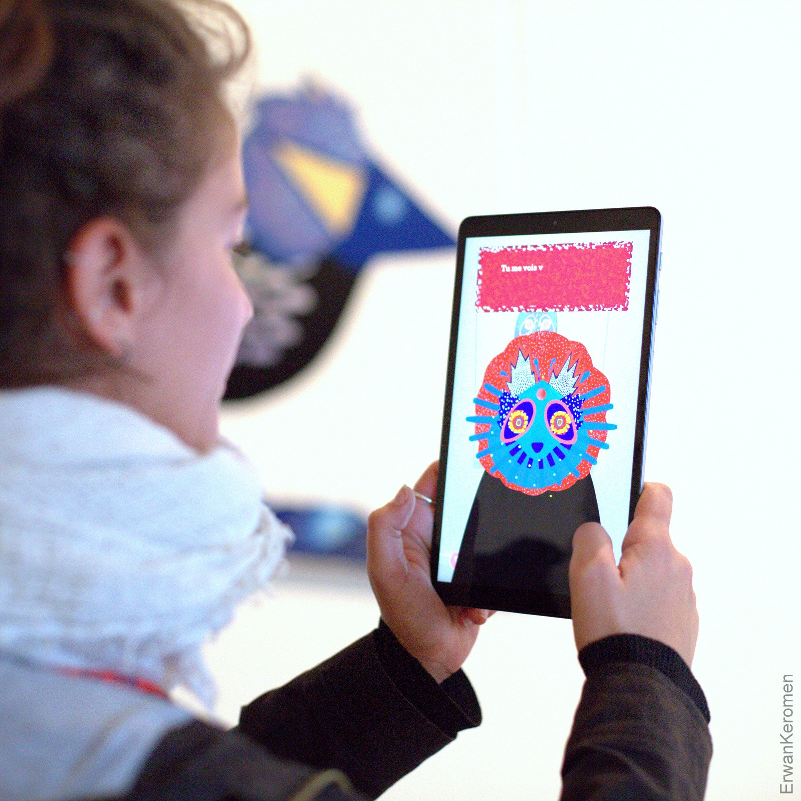 The participants are invited to download the free app Uramado AR, Tanukis awake ( on IOS and Android ) to start this treasure hunt. As the stickers are discovered one by one, the spirits come to life, bewildered, and ask questions to the participant. According to the reply given, the participant will discover at the end of the route that he himself is a spirit and will get to leave the game with his own colourful mask in augmented reality.