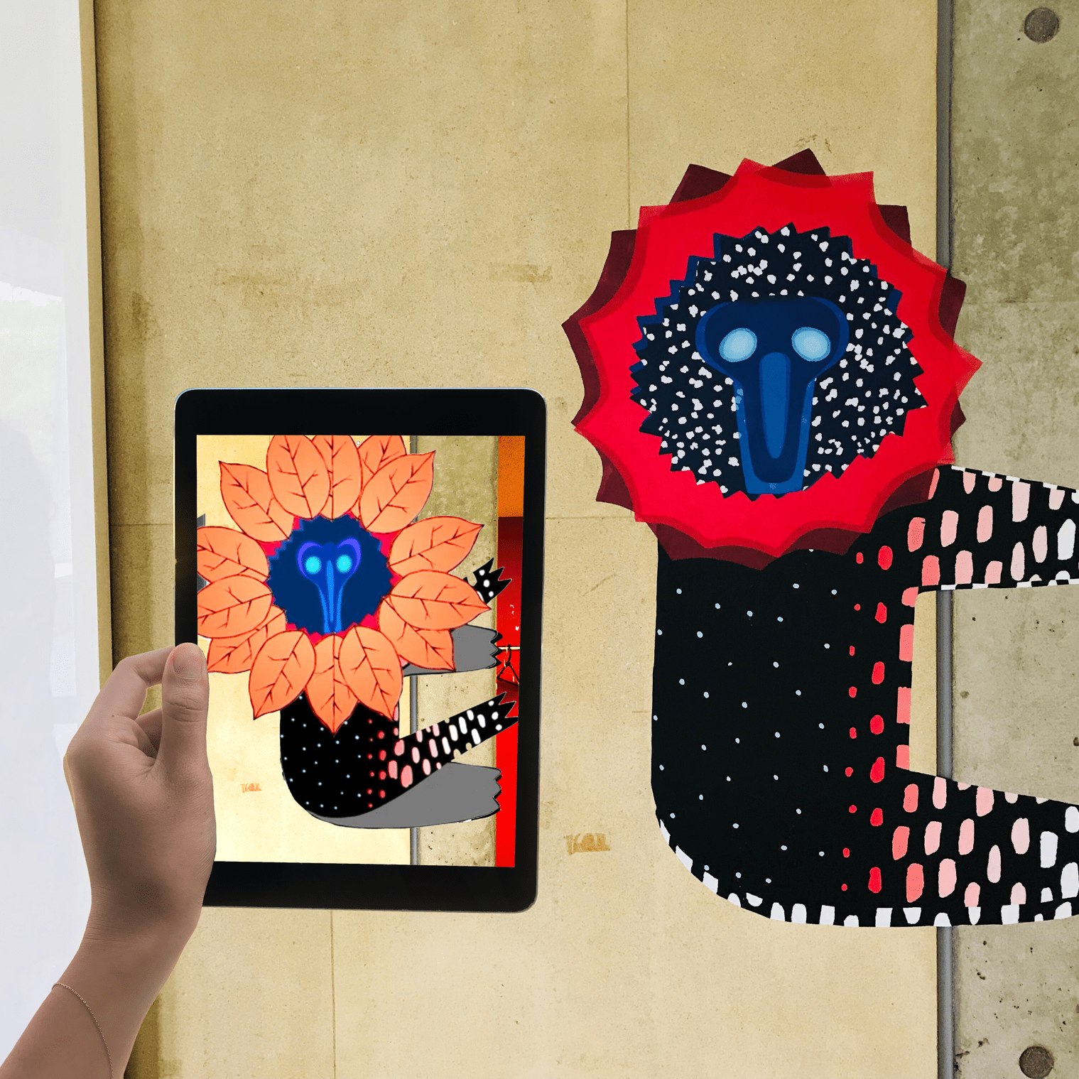 Uramado is a treasure hunt route in augmented reality by Julie Stephen Chheng. It tells the story of Tanukis which are spirits of the forest waking up in the city. Animals are placed in different places of the appointed area, outside and inside, more or less hidden, in different sizes (up to 4 meters).